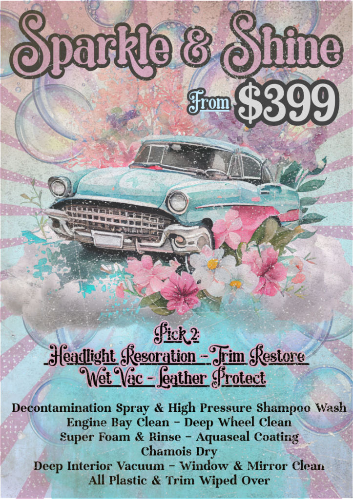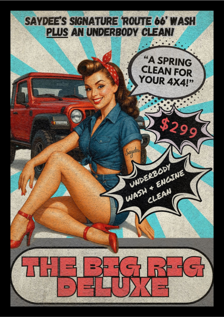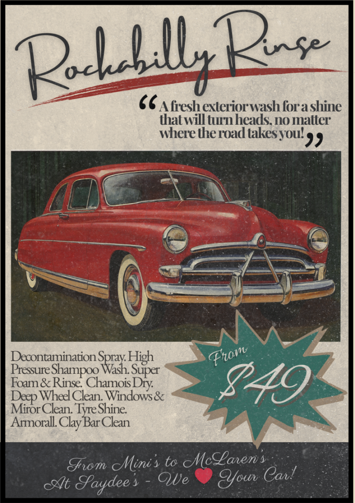 At Saydee’s, we’re all about the experience! Our 1950s-themed hand car wash brings a nostalgic vibe with neon lights, retro decor, and even a diner-inspired waiting room. Plus, we take pride in offering a personalised, friendly service that leaves your car looking spotless and you feeling great.